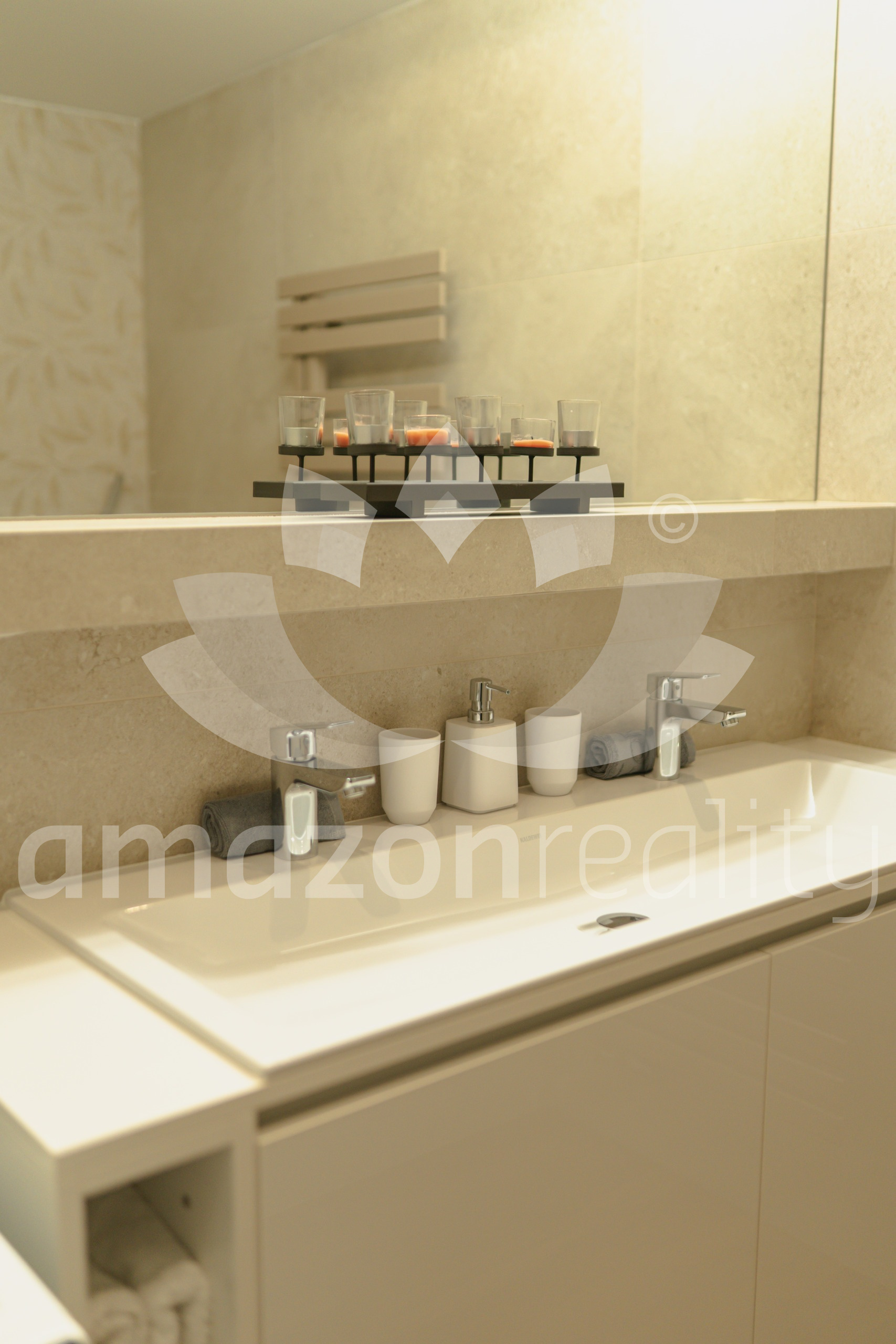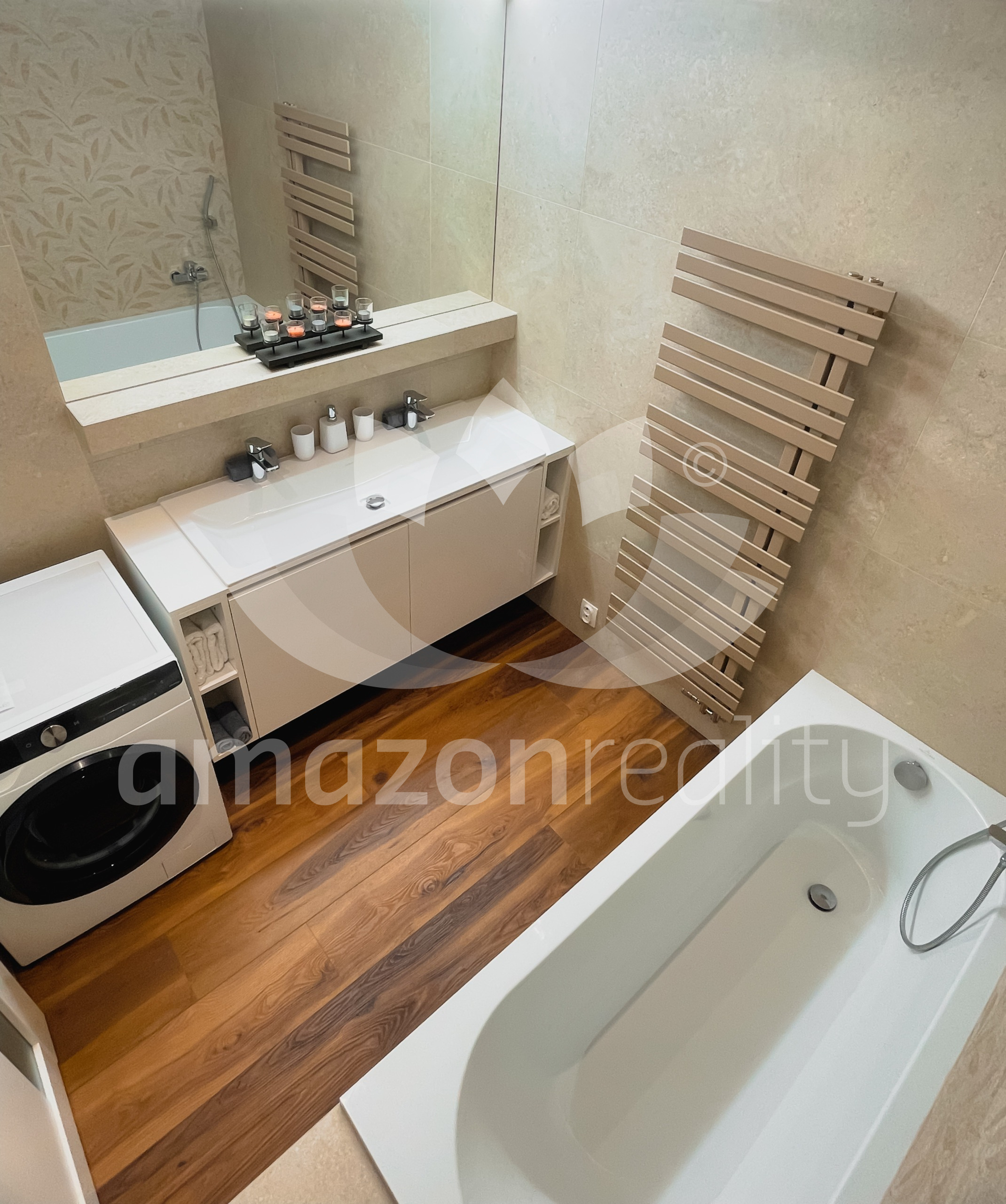 * **Dve kúpeľne:** jedna so sprchovacím kútom a WC, druhá s vaňou a WC.