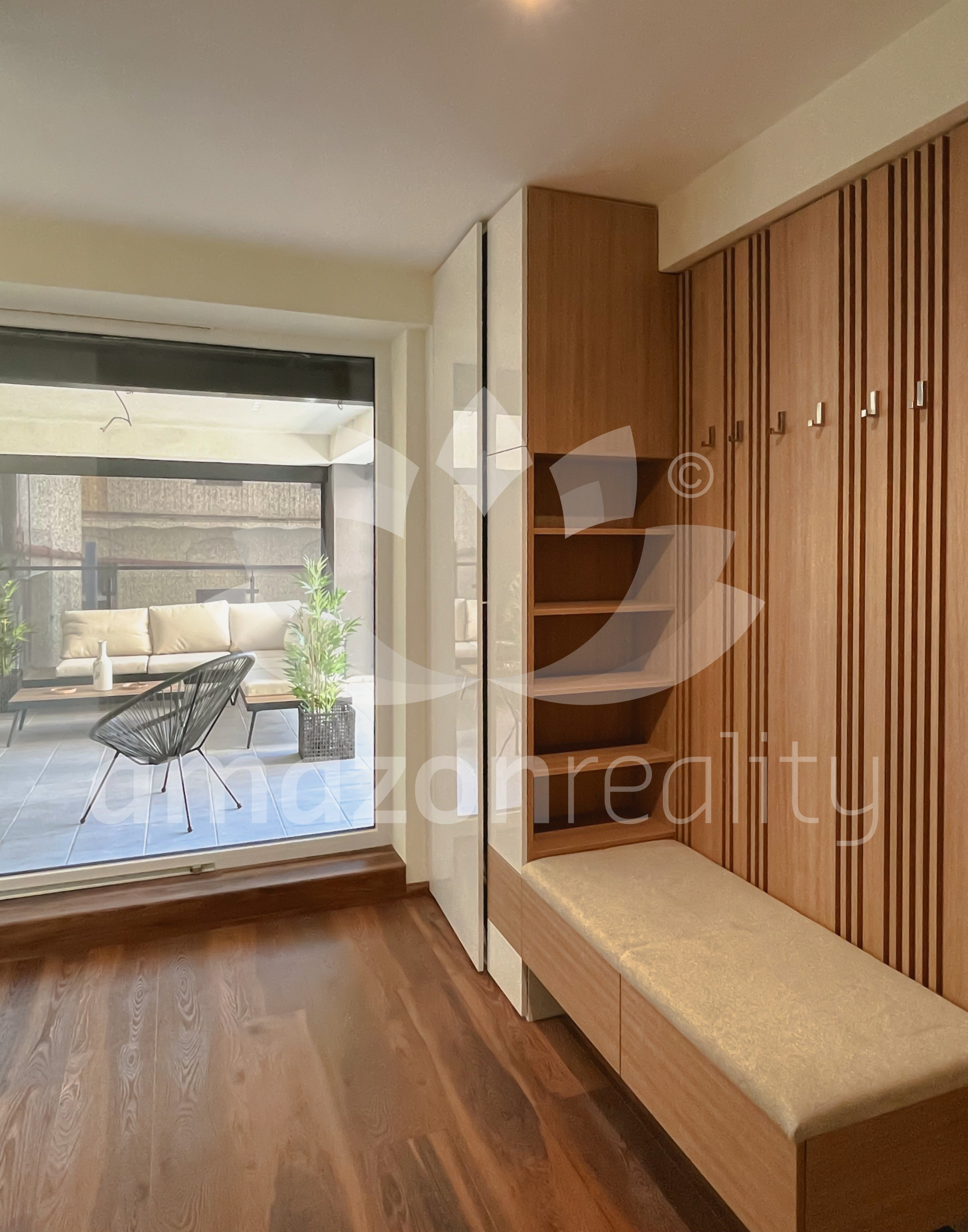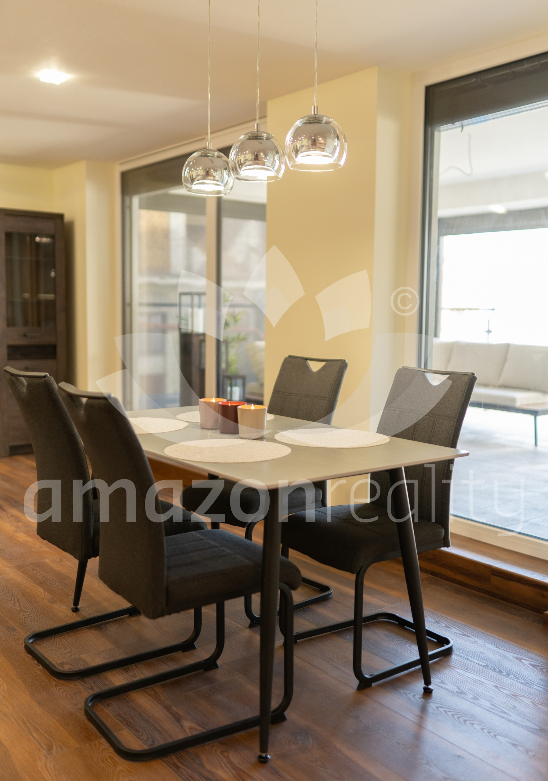 * **Priestranná terasa (18 m²) a balkón (8 m²)** s dizajnovým záhradným nábytkom – ideálne na relaxáciu.