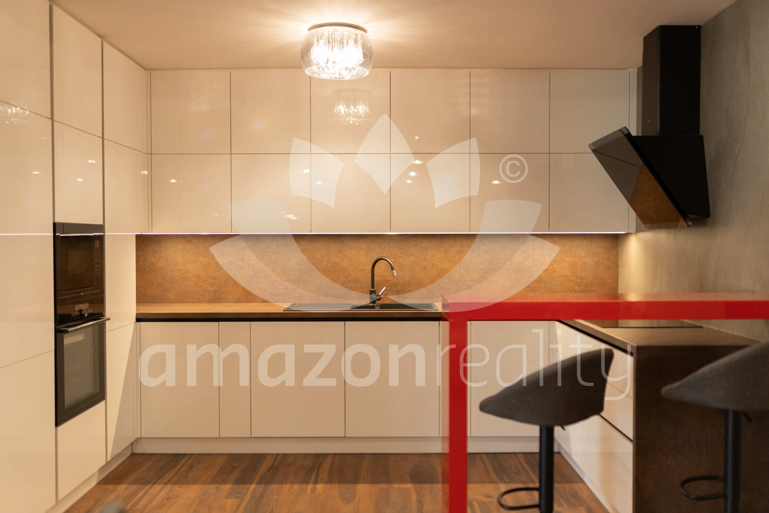 * **Moderná kuchynská linka** so spotrebičmi (umývačka riadu, chladnička s mrazničkou, elektrická rúra, keramická varná doska, mikrovlnka, digestor).